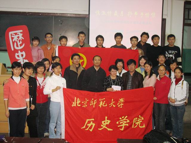 纪念活动主要包括“革命先声”、“红旗漫卷”、“风云新途”、“复兴之路”四大板块,分别由德赢vwin体育官网登录05级本科生李阳、07级本科生宋健、07级硕士生姚莉、04级本科生王猎做了主题发言,用翔实的材料介绍了俄罗斯民族的历史文化、十月革命的经过和影响、赫鲁晓夫对斯大林个人崇拜的批判、苏联解体的原因等问题。主题发言之间穿插俄罗斯诗歌朗诵、前苏联歌曲演唱、俄罗斯历史知识竞猜等活动。德赢vwin体育官网登录分团委全体同学和巴图金娜教授合唱的一曲《共青团员之歌》,激起了全场如雷般的掌声,巴图金娜教授更是忍不住流下了眼泪。