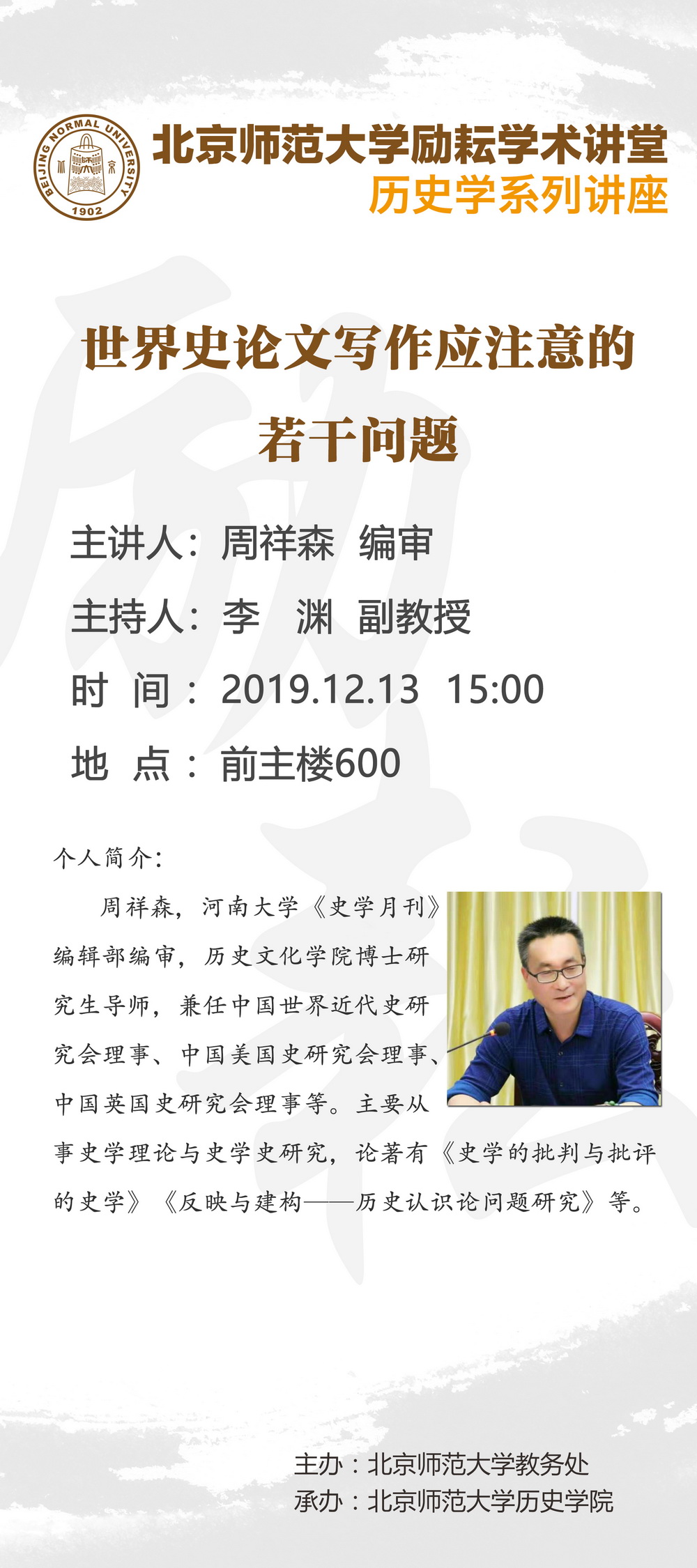 【励耘讲堂】周祥森:世界史论文写作应注意的若干问题