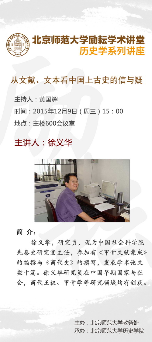 【励耘讲堂】徐义华:从文献、文本看中国上古史的信与疑