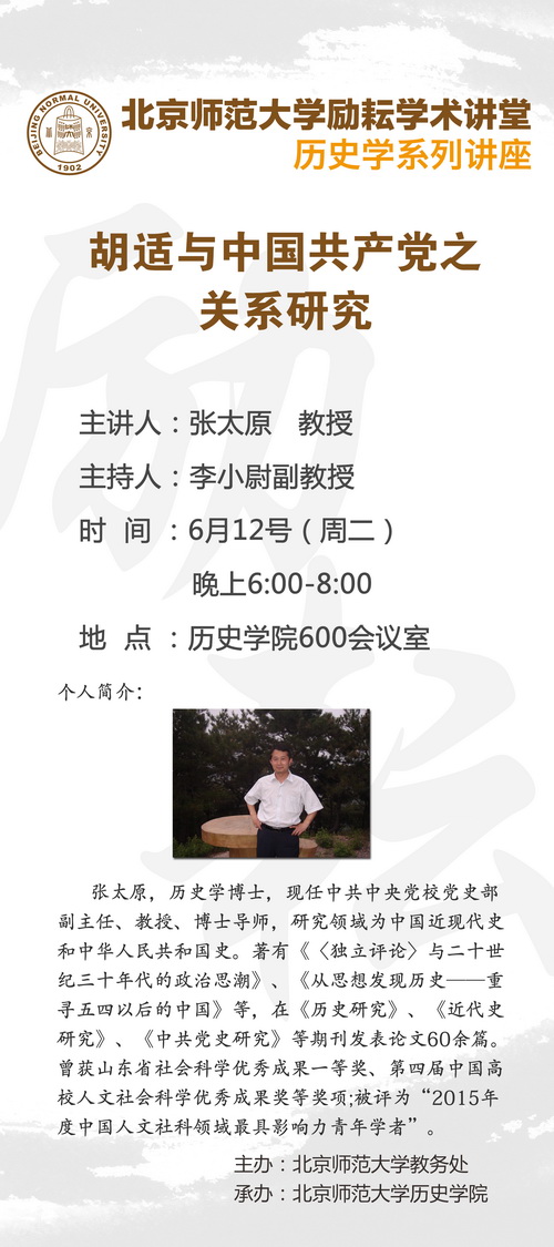 【励耘讲堂】张太原:胡适与中国共产党之关系研究