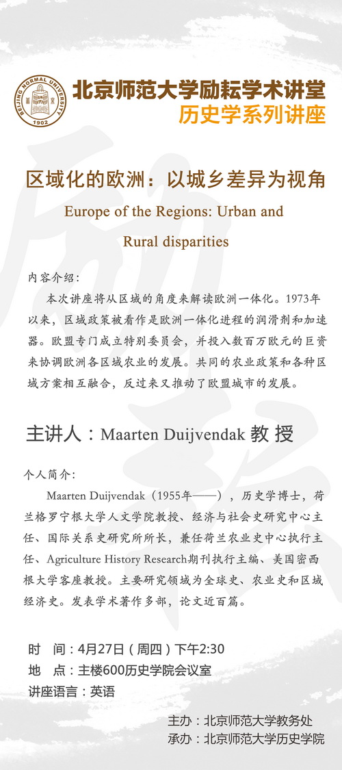 【励耘讲堂】Maarten Duijvendak:区域化的欧洲:以城乡差异为视角