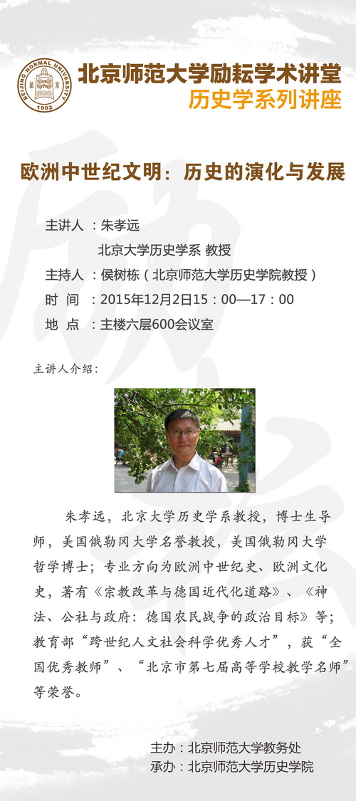【励耘讲堂】朱孝元:欧洲中世纪文明:历史的演化与发展