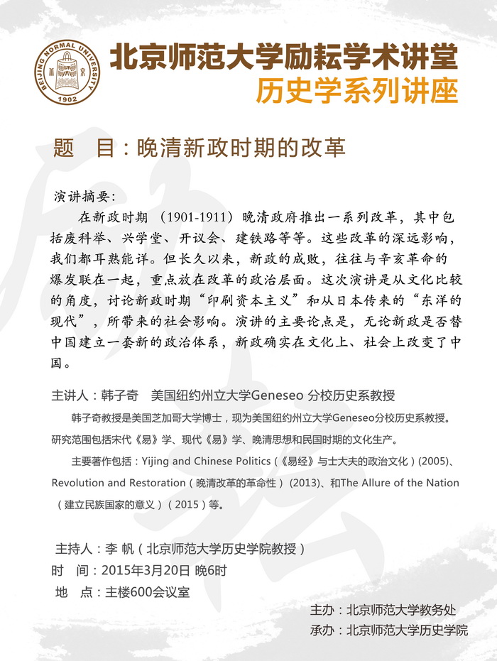 【励耘讲堂】韩子奇:晚清新政时期的改革