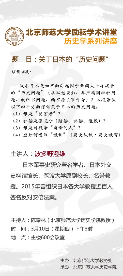【励耘讲堂】波多野澄熊:关于日本的“历史问题"