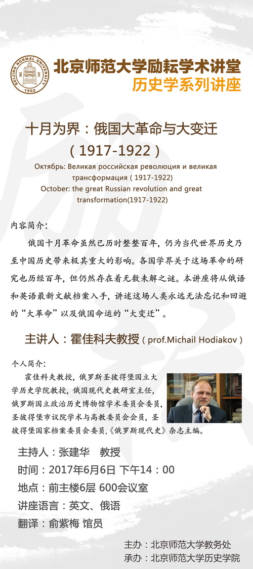 【励耘讲堂】霍佳科夫:十月为界:俄国大革命与大变迁(1917-1922)