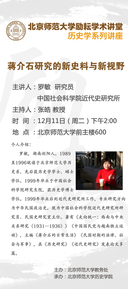 【励耘讲堂】罗敏:蒋介石研究的新史料与新视野