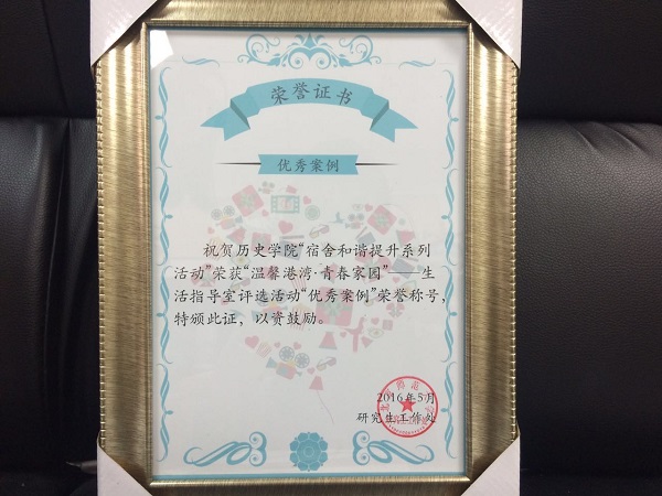 近日,在学校研究生工作处开展的“温馨港湾,青春家园”生活指导室评选活动中,德赢官网生活指导室“教师养成计”荣获校级优秀品牌项目,“宿舍和谐提升系列活动”获评校级优秀案例。