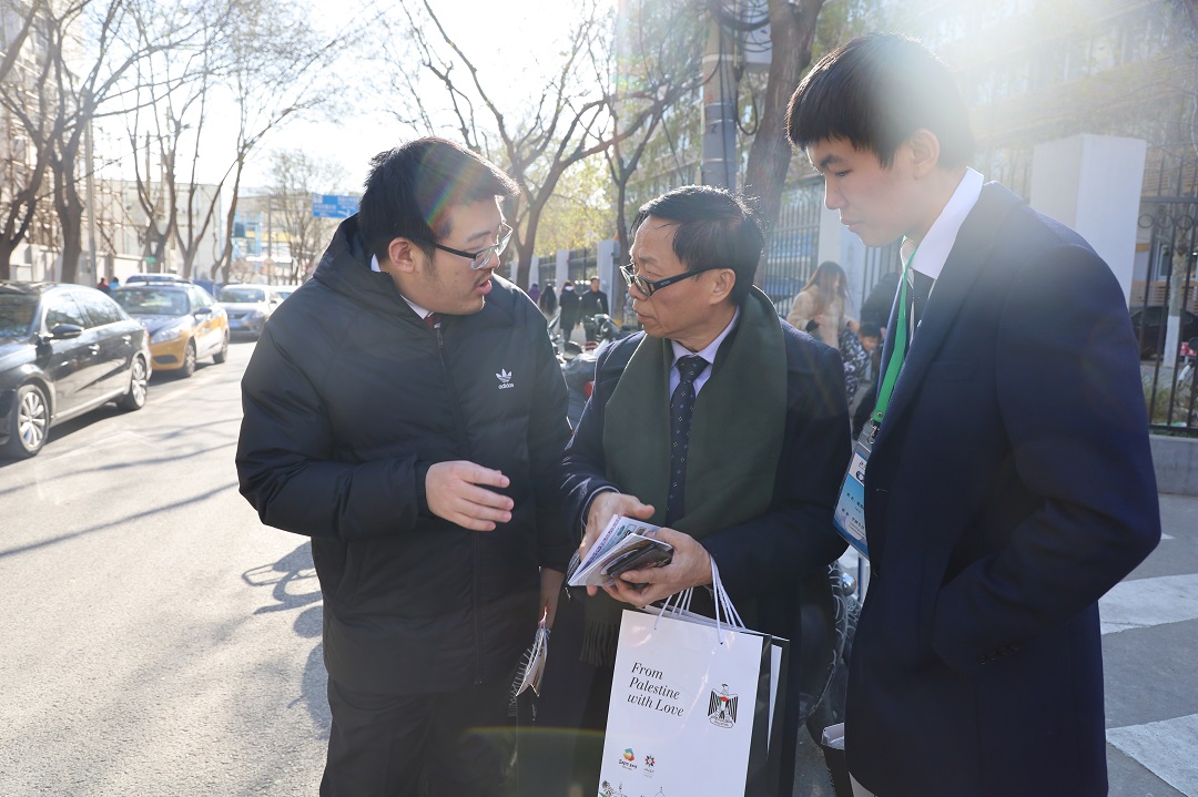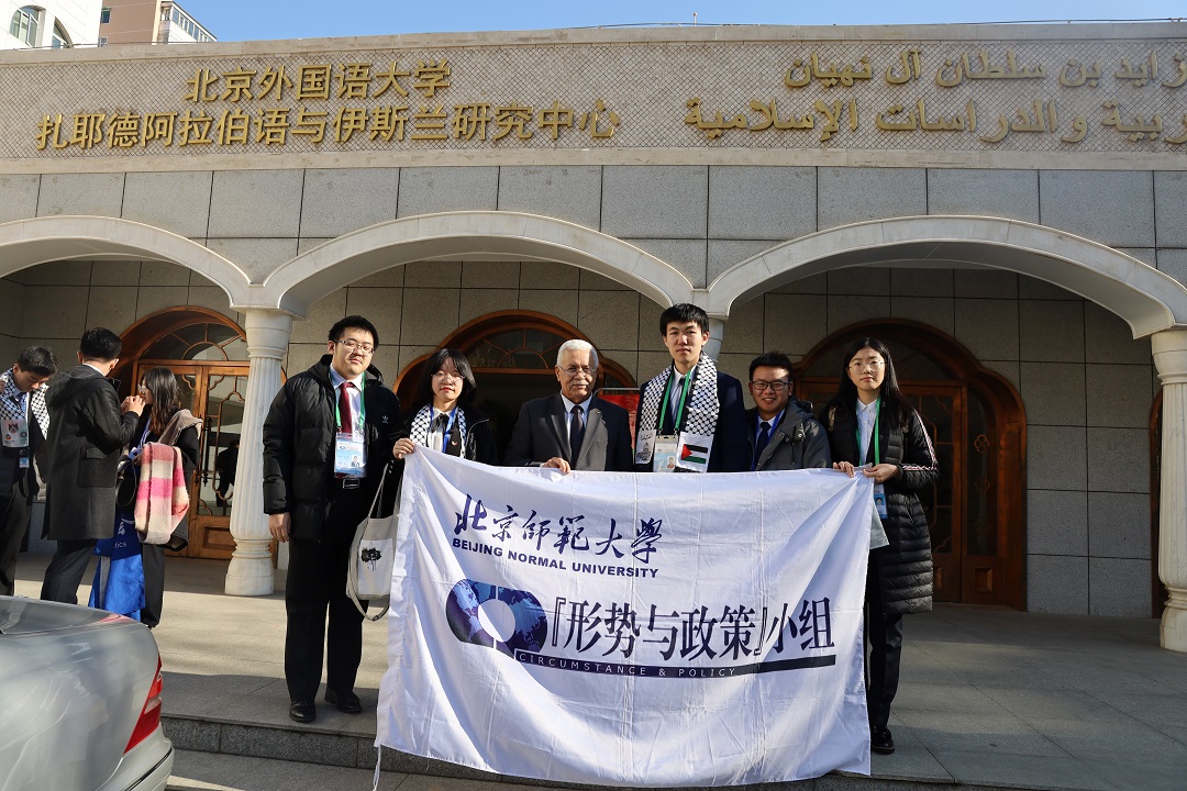 12月3日,2019年“声援巴勒斯坦人民国际日”纪念活动在北京外国语大学国际会议厅举行。活动由中国人民对外友好协会、巴勒斯坦驻华使馆与北京外国语大学联合举办。应中国人民对外友好协会和巴勒斯坦驻华大使馆的共同邀请,德赢官网“形势与政策”小组学研专员梁炜晗,宣传专员熊太波,组长助理杨新迎,原副组长兼学研专员赵文博、宁轩等参加本次活动。