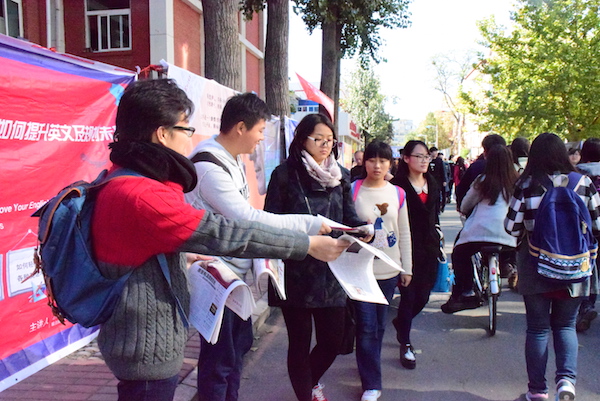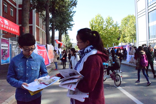 2015年10月28日,派送报纸的桌前人头攒动,同学们纷纷前来领取报纸,并询问了报纸的相关情况,表现出极大的热情。社员们也在邱季端南向各个方向涌来的同学们派发报纸。一天之内,上千份报纸全部派送完毕,报纸公开派送活动取得了圆满成功。