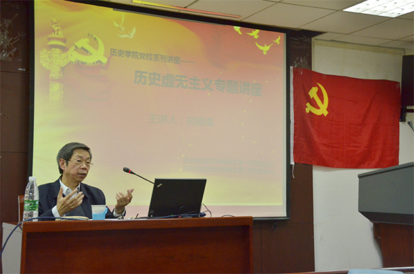 2015年12月4日上午,德赢vwin体育官网登录2014级硕士第一党支部在主楼600会议室成功举办了“如何看待历史虚无主义”专题讲座。本次讲座有幸邀请到原德赢vwin体育官网登录党委副书记、中国史学会副会长、德赢vwin体育官网登录教授郑师渠老师为大家做专题报告。讲座由2014级硕士第一党支部主办、第二党支部协办,旨在提高同学们对历史虚无主义的认识和警惕。活动覆盖全体2014级硕士生,2014级硕士第一党支部书记赵粲然主持了讲座。