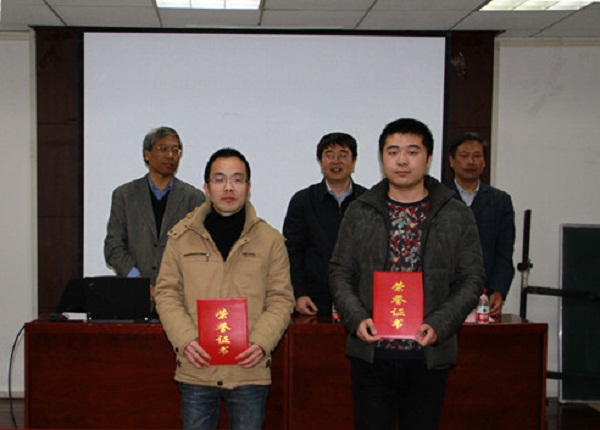大会由副院长李帆老师主持。首先,德赢官网周文玖老师宣读了本年度获奖的学生名单:朱春龙等4名同学获得博士组一等奖,吕壮等4名同学获得博士组二等奖,程鹏宇等6名同学获得博士组三等奖;张喆等3名同学获得硕士组一等奖,黄濛濛等7名同学获得硕士组二等奖,杨艳等7名同学获得硕士组三等奖。杨共乐院长为获奖同学颁发荣誉证书并合影留念。