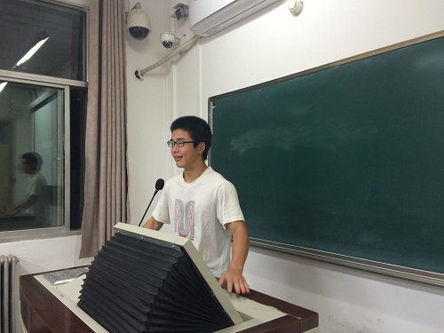 首先,王泽为到场同学介绍了“传统文化进校园”系列活动的丰富的内容和多样的形式,包括制作线装书、拓印、投壶、木射等。各个活动具有极强的可调整性与可应用性,既能扩充为一堂传统文化教学实践课,也可以改编成课堂之余的文体游戏。这一系列活动在支教过程中可灵活应用,丰富课程内容的同时也能在中学校园中普及历史文化知识。
