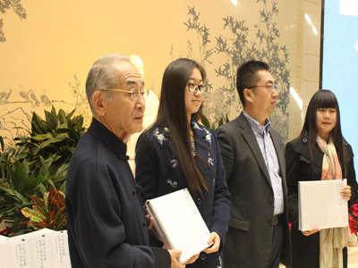 随后工作人员为大家宣读了著名历史学家章开沅先生的书面致辞,章先生在致辞中对基金会不吝赞美之词,对书籍出版工作表示高度的认同。嘉宾致辞结束之后,副主席杭元祥先生向宫崎家赠送文物,同时宫崎家也向中国宋庆龄基金会赠送了文献资料。互赠资料之后,纪念会便进入了最后一项仪式:新书揭幕。在场各位嘉宾共同为新书揭幕。同时,各位嘉宾向与会高校学生代表赠书,春秋学社孙悦代表德赢官网接受馈赠新书并与宫崎黄石先生合影留念。