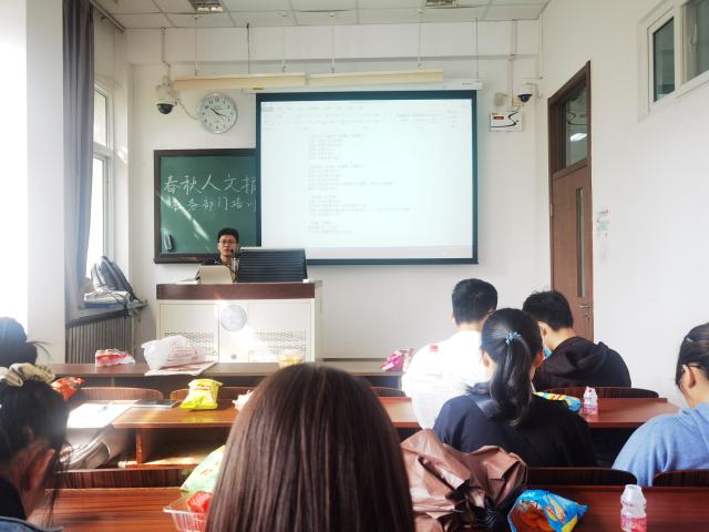 培训过程中,部长李若峰首先详细介绍了社务部门的各项工作内容与工作要求,并强调了社务部门严谨的工作精神与态度。李若峰还就社务部门主持稿、新闻稿和邀请信写作中的写作技巧进行细致讲解,同时向社员们传授自己的工作经验与心得。