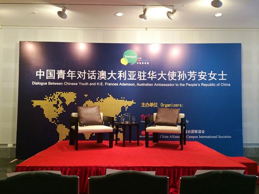 5月21日下午,应澳大利亚驻华大使馆邀请,德赢官网学生和北京市15所高校学生代表赴澳大利亚大使馆参观,与澳大利亚驻华大使孙芳安女士(Ms. Frances Adamson)围绕“全球视野下的中澳青年交流”展开别开生面的对话。