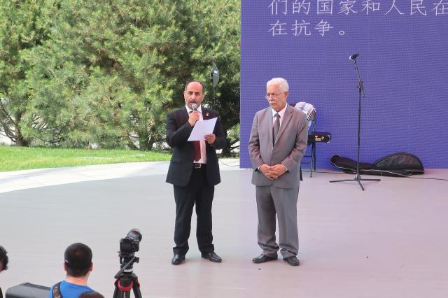 巴勒斯坦农业部长利雅得·安塔里(Riad al-Attari),巴勒斯坦驻中华人民共和国大使法里兹·马赫达维(Fariz Mahdawi),北京世界园艺博览会事务协调局总经济师林晋文,中国贸促会贸易投资促进部巡视员、北京世园会中国馆副总代表胡凡以及多国驻华使节和外交人员出席了“巴勒斯坦日”开幕式。开幕式由马赫达维大使主持。
