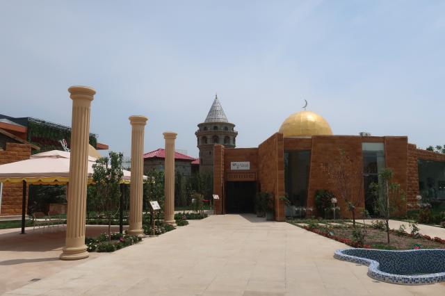 开幕式前,同学们参观了巴勒斯坦室外展园,并见证了在展园前举行的升旗仪式。展园以“巴勒斯坦鸢尾花在北京盛开”为主题,将阿拉伯风格的大门、以耶路撒冷城为雏形的室内展示区、特色花卉绿植以及各类独具特色的手工艺品有机结合,融入了宗教、历史、民俗等多种元素,展示了巴勒斯坦多姿的古老文明,体现了当地人民渴望实现人与自然和谐发展的生态文明理念。