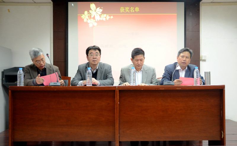 首先,由周文玖老师宣读2016年度获奖学生名单。马新月等4名同学获得一等奖,贾彩绫等21名同学获得二等奖,刘晓月等15名同学获得三等奖。杨共乐、郭家宏、李帆和周文玖四位老师为获奖同学颁发荣誉证书并合影留念。