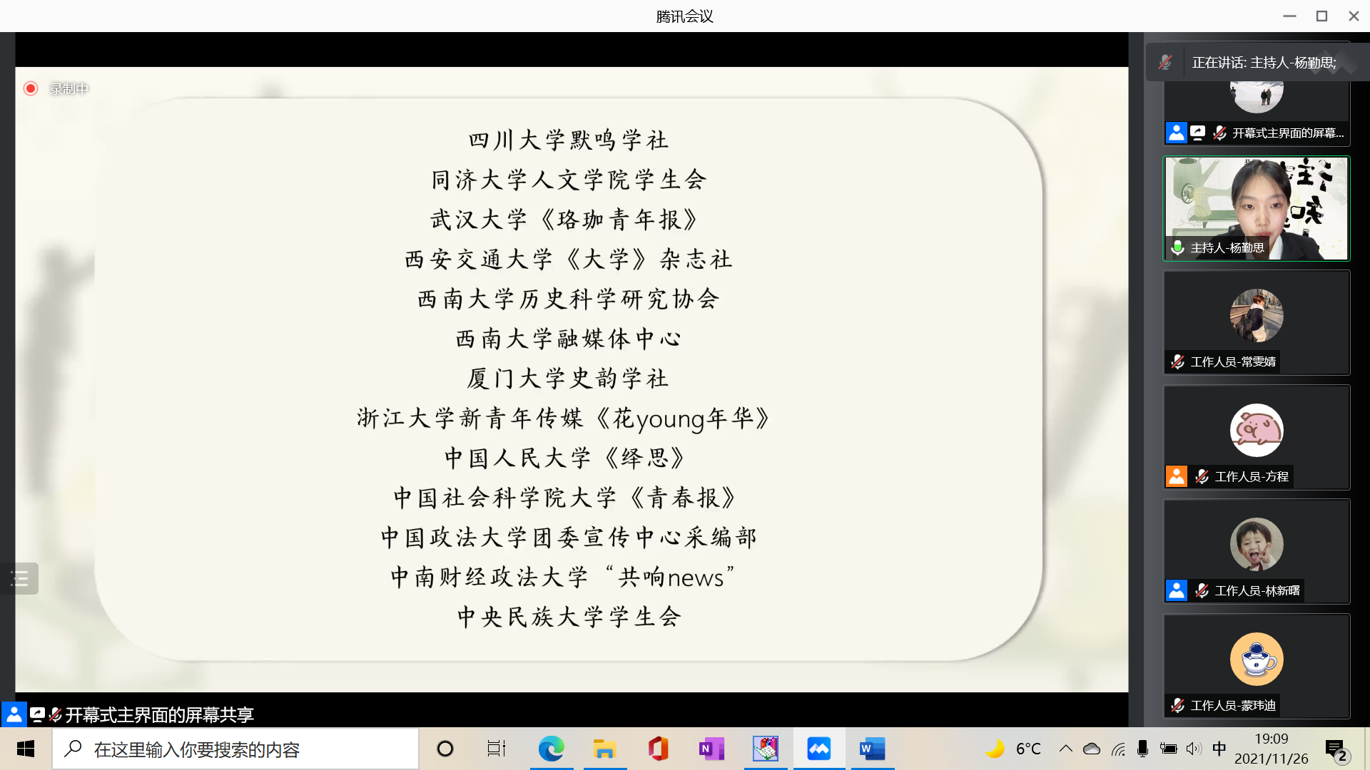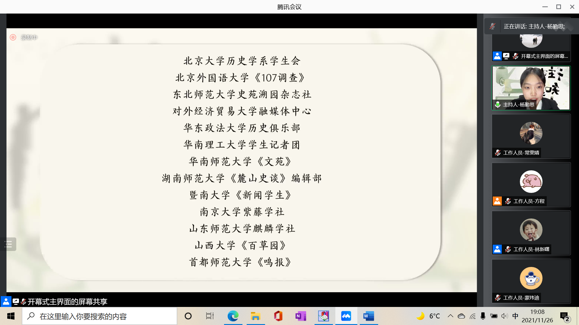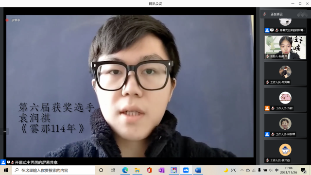 2021年11月26日晚七点,德赢vwin体育官网登录春秋人文报社采用线上的方式成功举办第八届“全国高校大学生家史大赛”开幕式。