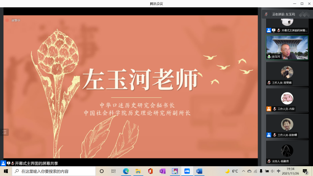 之后,参加开幕式的各位嘉宾老师从不同角度出发,从多个角度对家史写作进行指导。左玉河老师指出口述访谈的本质是采集和记录历史记忆,而口述历史是以口述访谈的方式,以影像和文字为载体,采集和保存记忆的工作。但是,由于当事人的记忆具有流动性,需要我们通过记忆中介物刺激当事人,以促使当事人的记忆固态化。左老师希望大家尽快掌握家史访谈技巧,与长辈沟通,消除代沟,创作出优秀的作品。