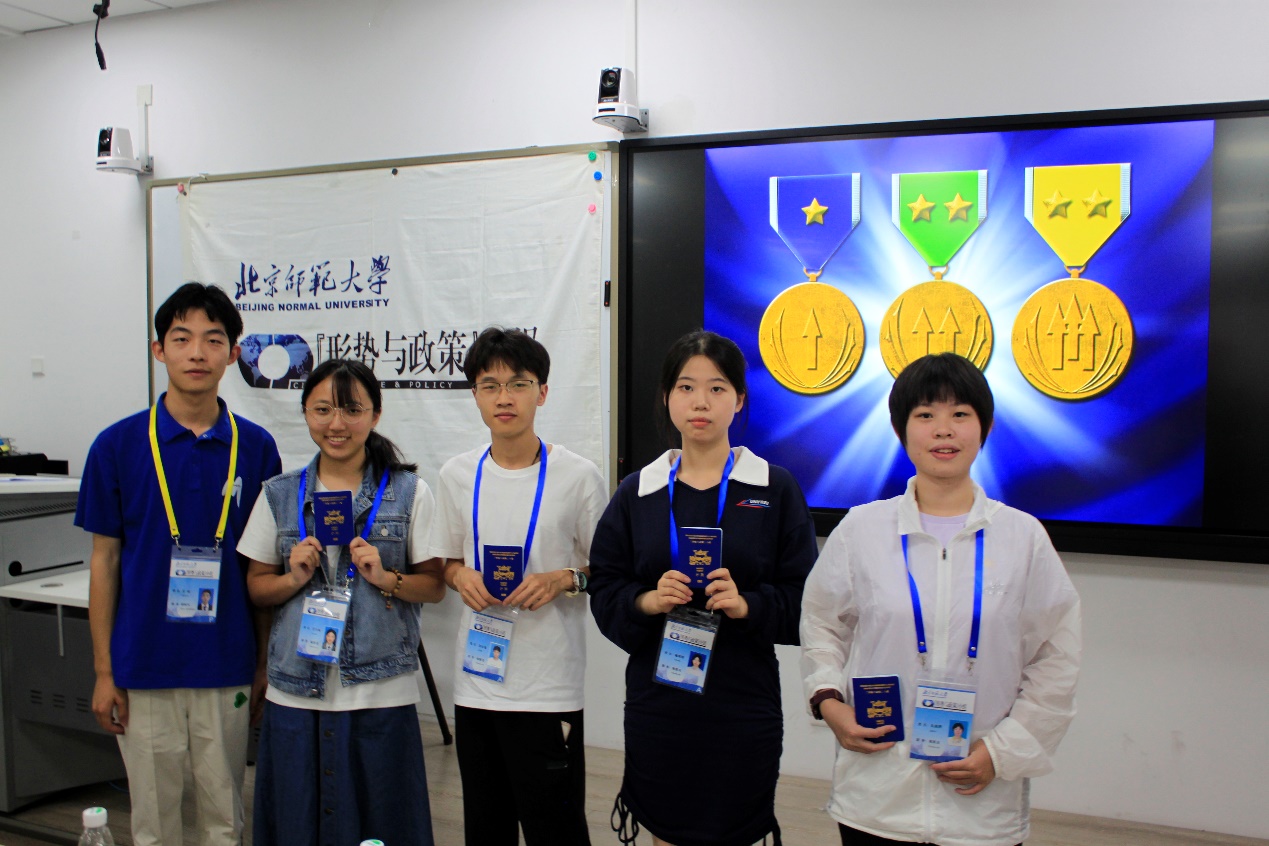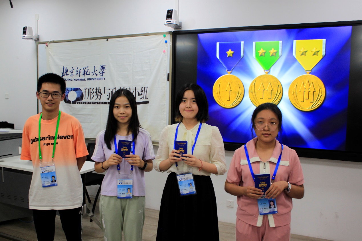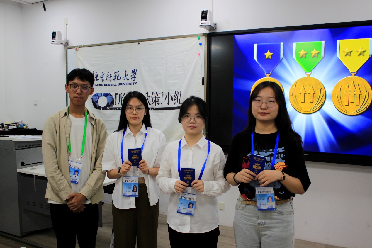 小组第十七届领导团队成员分别为新生颁发胸牌和护照。“邢予正护照”已陪伴小组进入第七个年头,护照采用汉、英、法三种语言,内页包含北师大校徽、小组标徽等设计元素,签证页的底纹为北师大各处标志性建筑。小组护照是每一位成员身份的象征,也是成员们成长蜕变的见证。