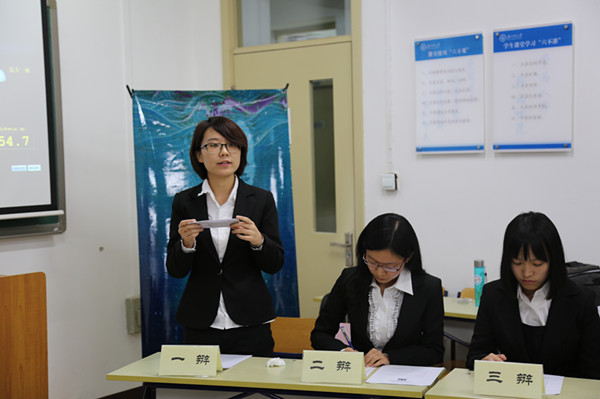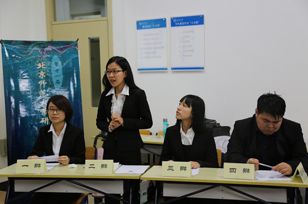 2016年11月20日15时,第十一届北师大“金声杯”研究生辩论赛第二轮晋级赛在教二111教室顺利举行。这场辩论赛中,历史—心理学院联队和艺术与传媒学院代表队分别作为正反方围绕“人生中的选择越多越幸福/选择越少越幸福”的辩题展开了精彩辩论,经过紧张激烈的交锋,我队最终不敌对手,暂列待定席。