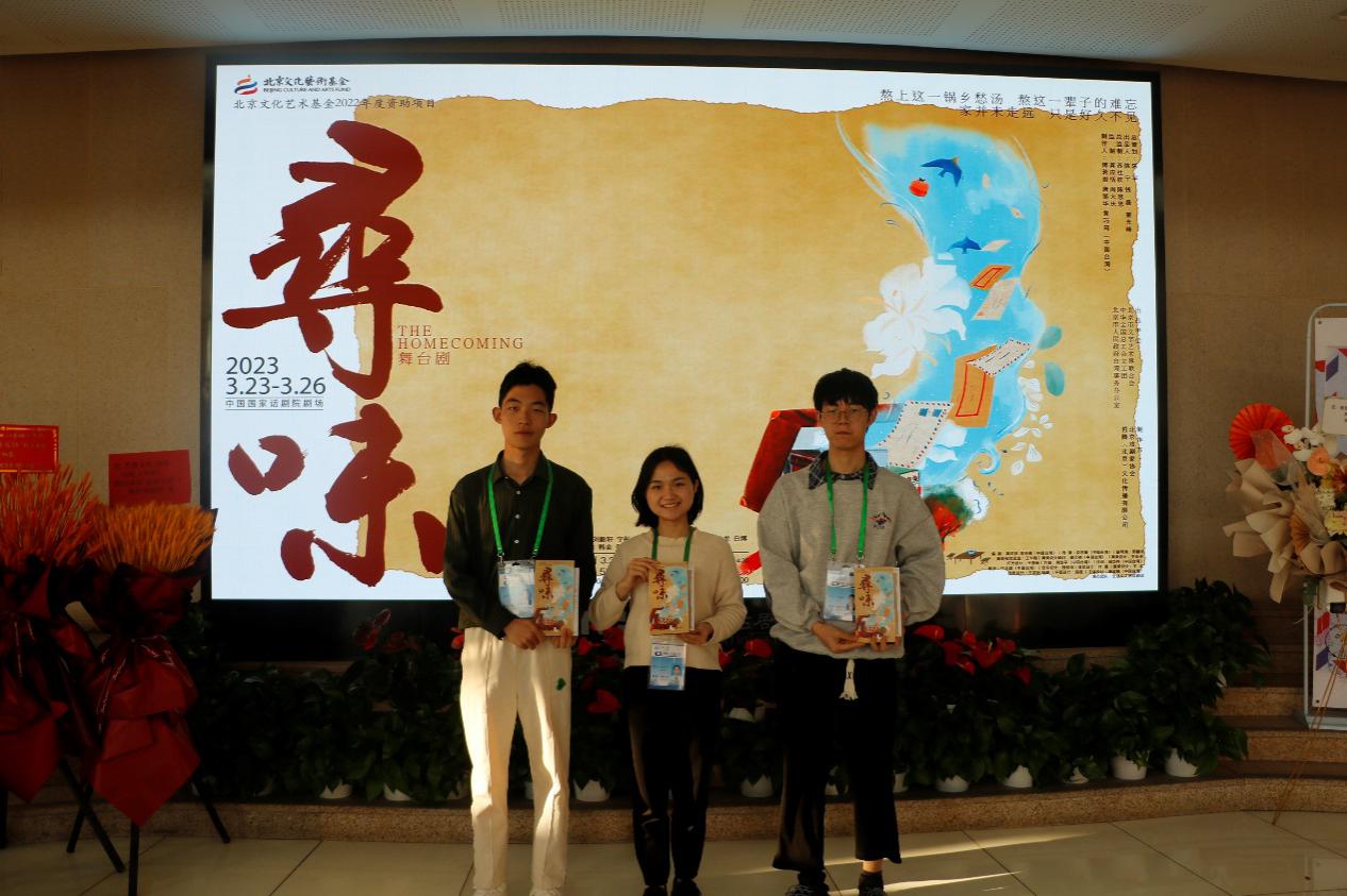 2023年3月26日下午,“形势与政策”小组成员代表余秋苹、宋锐、章益诚应邀赴中国国家话剧院剧场观看两岸主题舞台剧《寻味》演出。此剧以“眷村牛肉面”为纽带,联结起两岸三代人的离合悲欢,表达“一家并未走远,只是好久不见”的故乡乡愁和两岸人民血溶于水不可断绝的脉脉亲情。