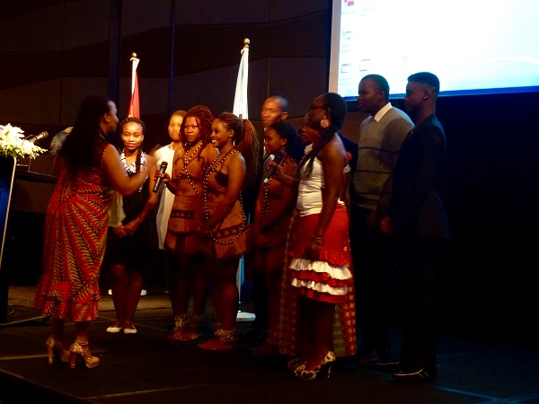 下午17时许,德赢官网学生代表王聿闻同学抵达金茂威斯汀酒店,使馆工作人员向其表示了热烈的欢迎,并向其赠与了代表中博友好的胸针。在工作人员的邀请下,王聿闻同学代表德赢官网“形势与政策”小组在嘉宾册上签名。随后,招待会正式开始,博茨瓦纳驻华大使萨萨拉·乔治先生向到场来宾致欢迎辞。他总结了博茨瓦纳今年来的发展,回顾了中博建交的历程,并展望了中博合作的前景,表达了对中博关系发展的美好祝愿。在主持人的邀请下,博茨瓦纳在华留学生上台为大家表演了特色节目、演唱了表达中博友好的中英文歌曲。台下观众无不为他们的精彩演出与中博两国之间的深厚友谊而鼓掌喝彩。最后,在外交部副部长张明先生的陪同下,大使先生切开了博茨瓦纳国徽样式的蛋糕,并宣布晚宴开始。
