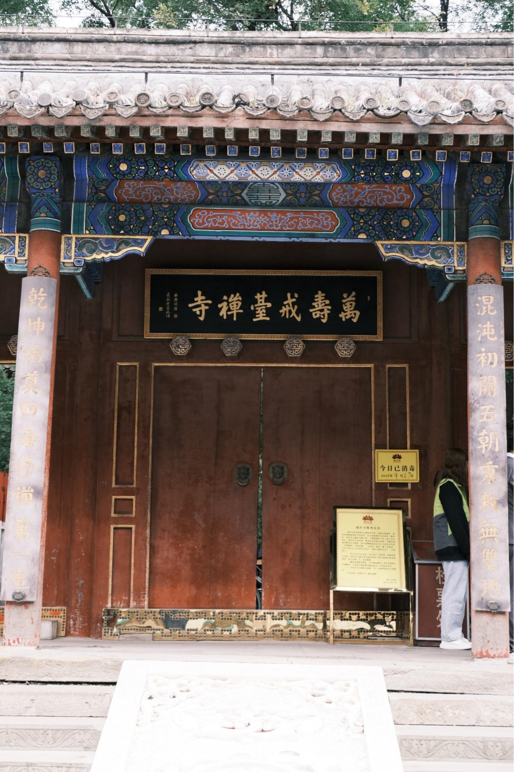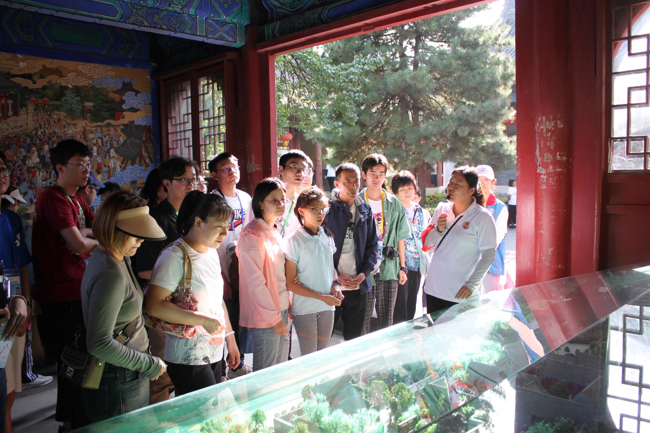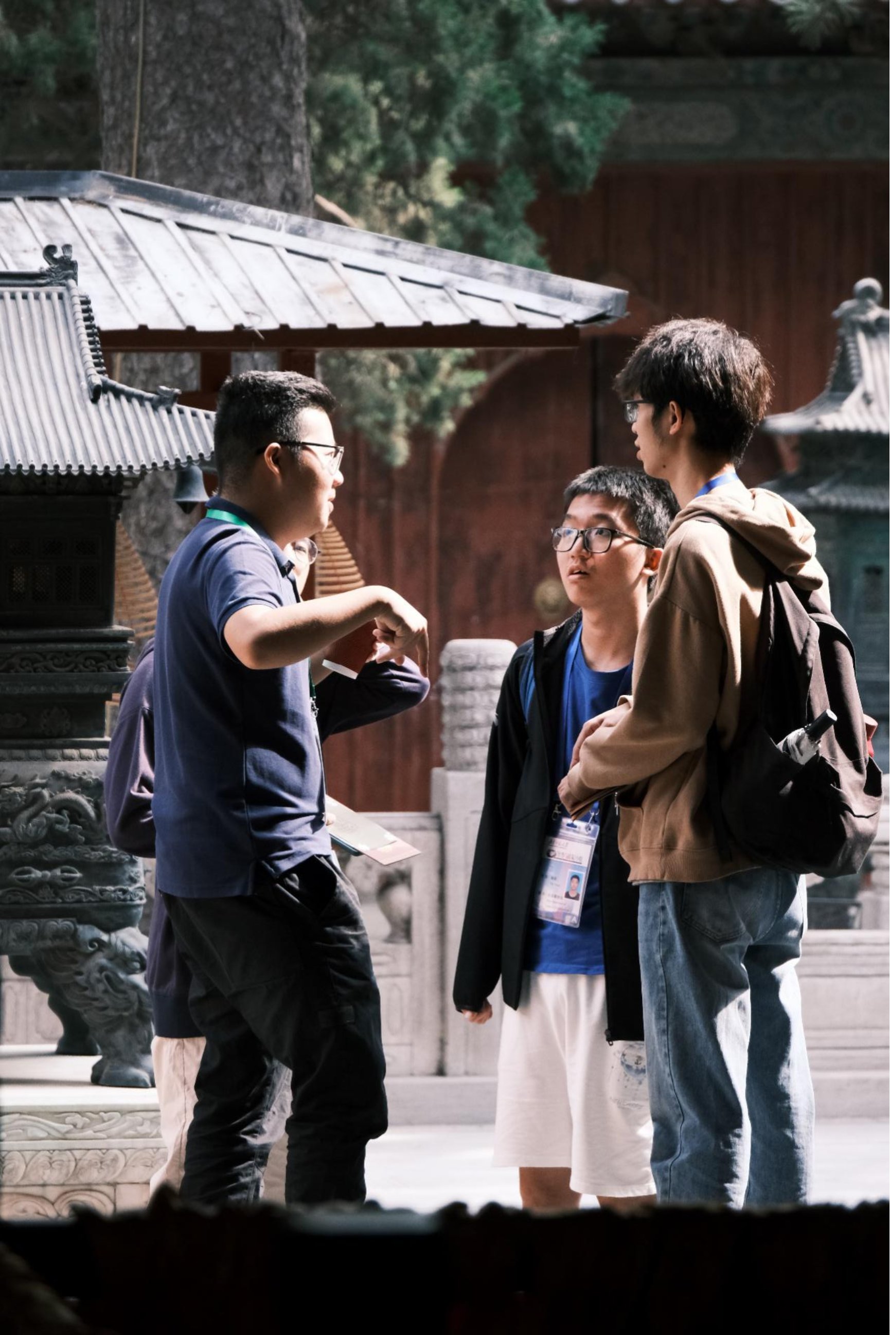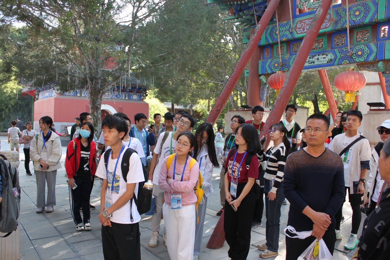 在戒台寺,讲解员为同学们介绍寺院的悠久历史文化。大雄宝殿前的香气生生不息,承载着普罗大众的朴素愿望。附近的辽塔历经战乱而屹立不倒,下方则是一片盎然的牡丹院,这片泥土曾与清末恭亲王奕䜣共度晚清动荡不安的时光。如今,戒台寺是中国北方保存辽代文物最多、最完整的寺院,并被批准为第四批全国重点文物保护单位。