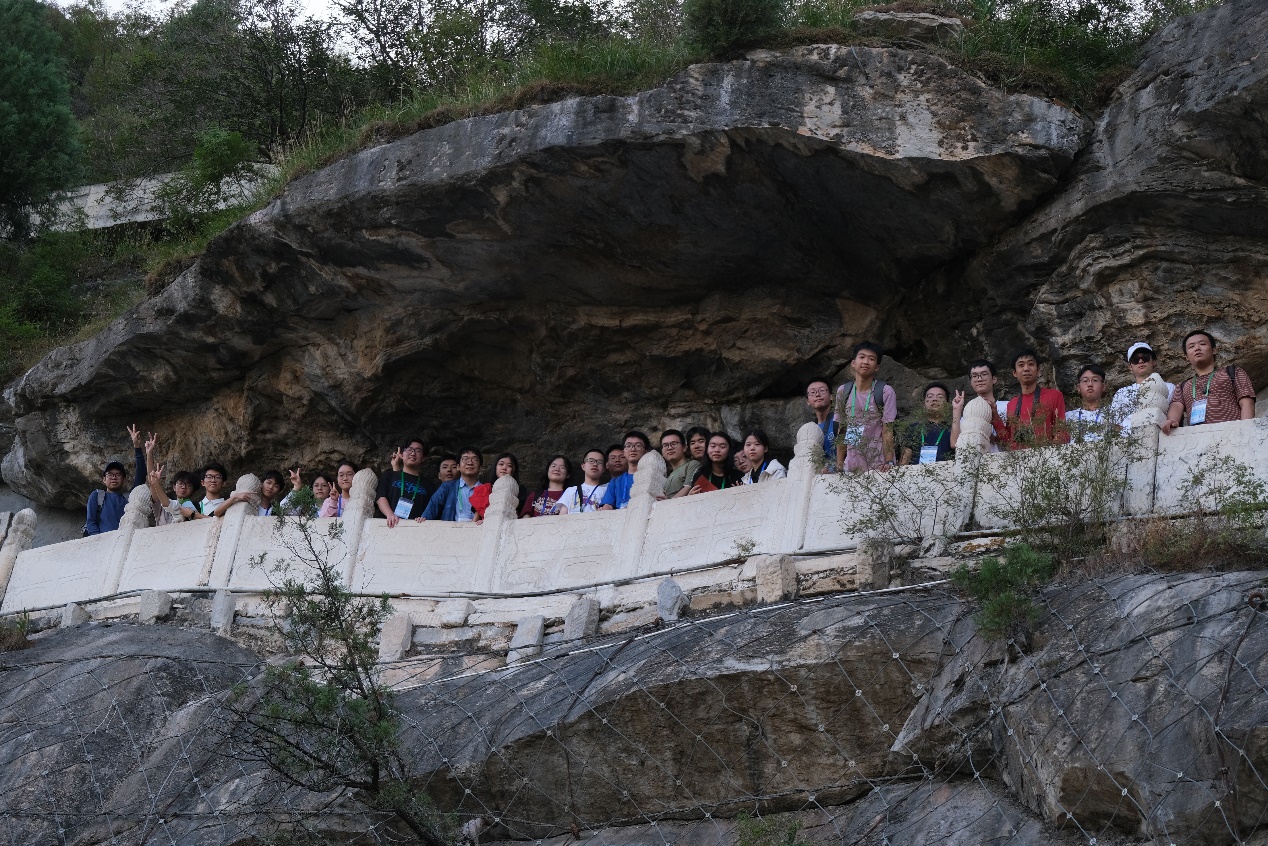 随后,同学们踏着崎岖的石头路,探访寺后石经山藏经洞。洞内的石板刻着佛教经典,阅尽千年历史变迁,这早已成为连接古代和当代的桥梁;而在洞外的世界,落日余晖照耀着山崖,列车鸣着长笛缓缓驶过大桥。探身端详厚重的石板,时隔千年,同学们仍惊叹于刻经事业的壮伟。