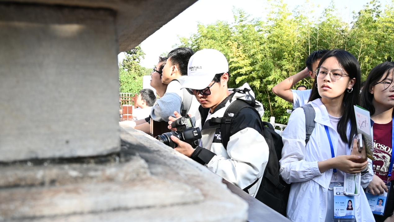 29日下午,在导览员的带领下,同学们抵达云居寺学习了文字印刷的历史和过程,在复建古塔下方参观石经地宫。云居寺辽北塔形制特殊,存世数量少,极富历史价值,四角又有唐塔分布,最早可追溯至唐景云二年(711年),塔面铭文尚存。贴近观察千年前的建筑,同学们不由得惊奇而震撼。