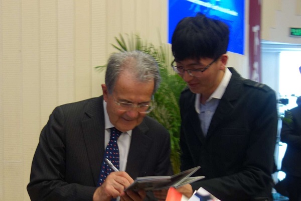 演讲结束后,德赢官网“形势与政策”小组成员用流畅的外语向普罗迪主席提问,就法国大选与极右翼民粹主义的隐忧、意大利在“一带一路”战略中所发挥的作用等话题与普罗迪先生进行对话交流。普罗迪主席畅谈了他的看法,给予同学们很大启示。最后,“形势与政策”小组成员送上小组介绍经折,向普罗迪主席介绍小组成员去年赴比利时和法国参访欧洲议会等方面的经历。普罗迪主席对德赢vwin体育官网登录在民间外交方面做出的努力表示高度赞赏,愉快地在小组的介绍经折上签名,并和同学们亲切合影留念。
