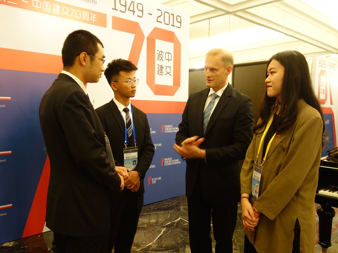 近日,德赢官网学生分别应邀参加了波兰驻华使馆举办的纪念中波建交70周年钢琴音乐会和荷兰驻华使馆举办的文化交流活动,同波兰共和国驻华特命全权大使赛熙军(Wojciech Zaj Czkowski)亲切交流。“形势与政策”小组组长胡潇予、宣传顾问陈子梁以及部分2019级成员参加了活动。