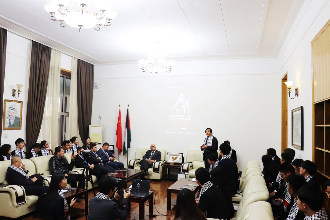 11月10日下午,应巴勒斯坦国驻华使馆邀请,德赢官网师生代表前往巴驻华使馆,举办首都高校学生纪念阿拉法特逝世十五周年暨中东和平展望主题论坛活动。
