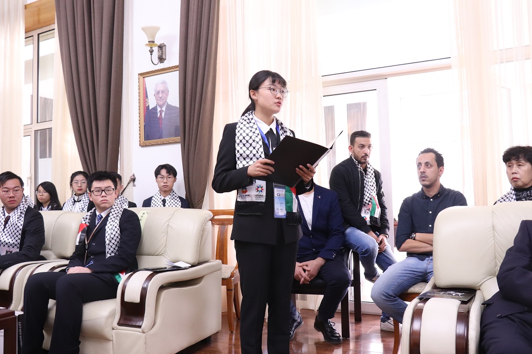 法里兹·马赫达维大使在致辞中对首都高校学生代表的到来表示欢迎,对中国政府和人民长期以来坚定支持巴勒斯坦民族解放的正义事业表示感谢。他动情地讲述巴勒斯坦近代以来的斗争历史,表达了巴人民对公平正义与和平安宁的渴望,期待中巴两国青年进一步加深理解、增进友谊。德赢官网本科生李柔嘉作为首都高校学生代表发言,回顾了阿拉法特主席具有传奇色彩的一生,表达了对阿拉法特主席的敬佩和怀念之情。