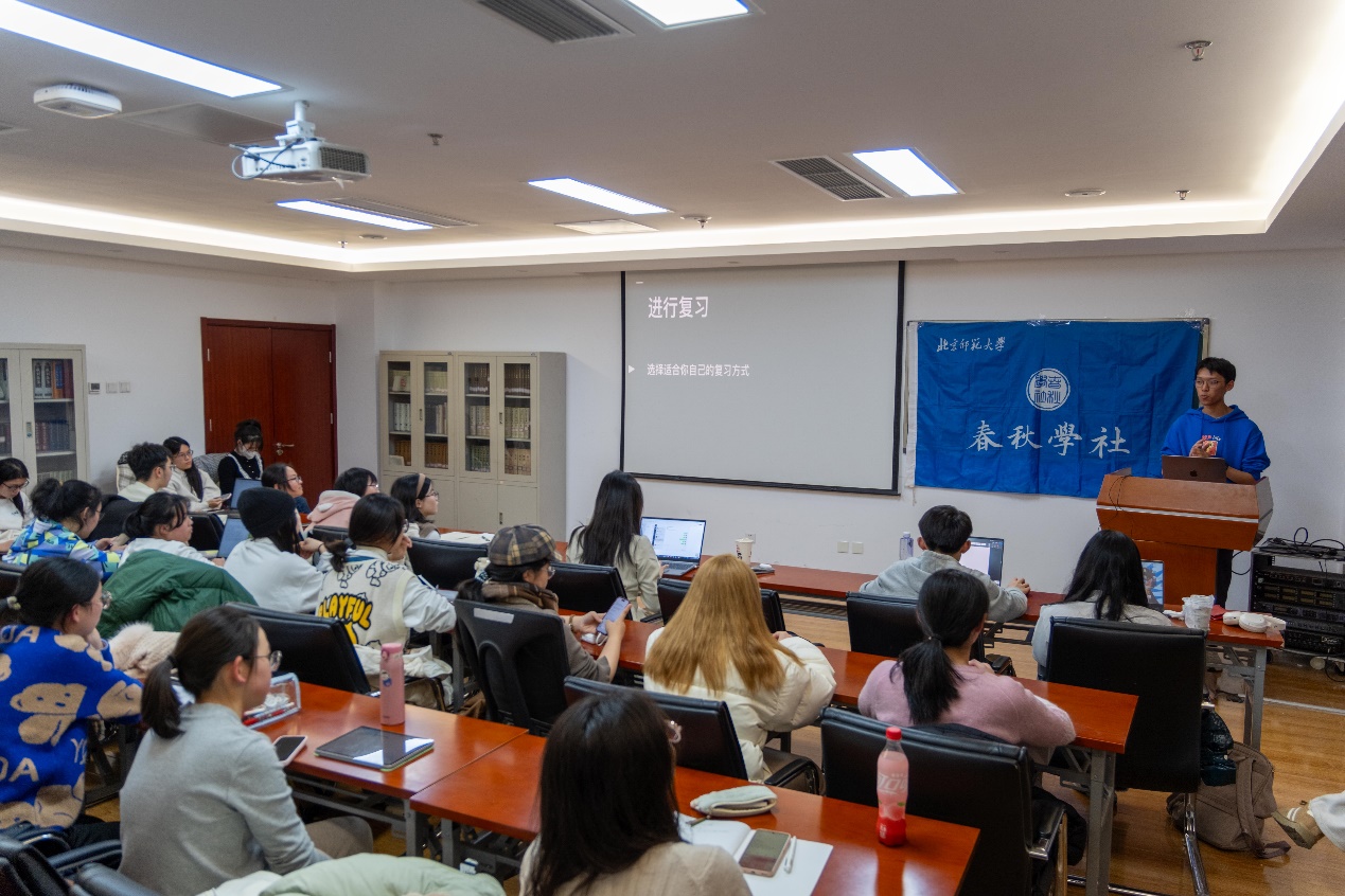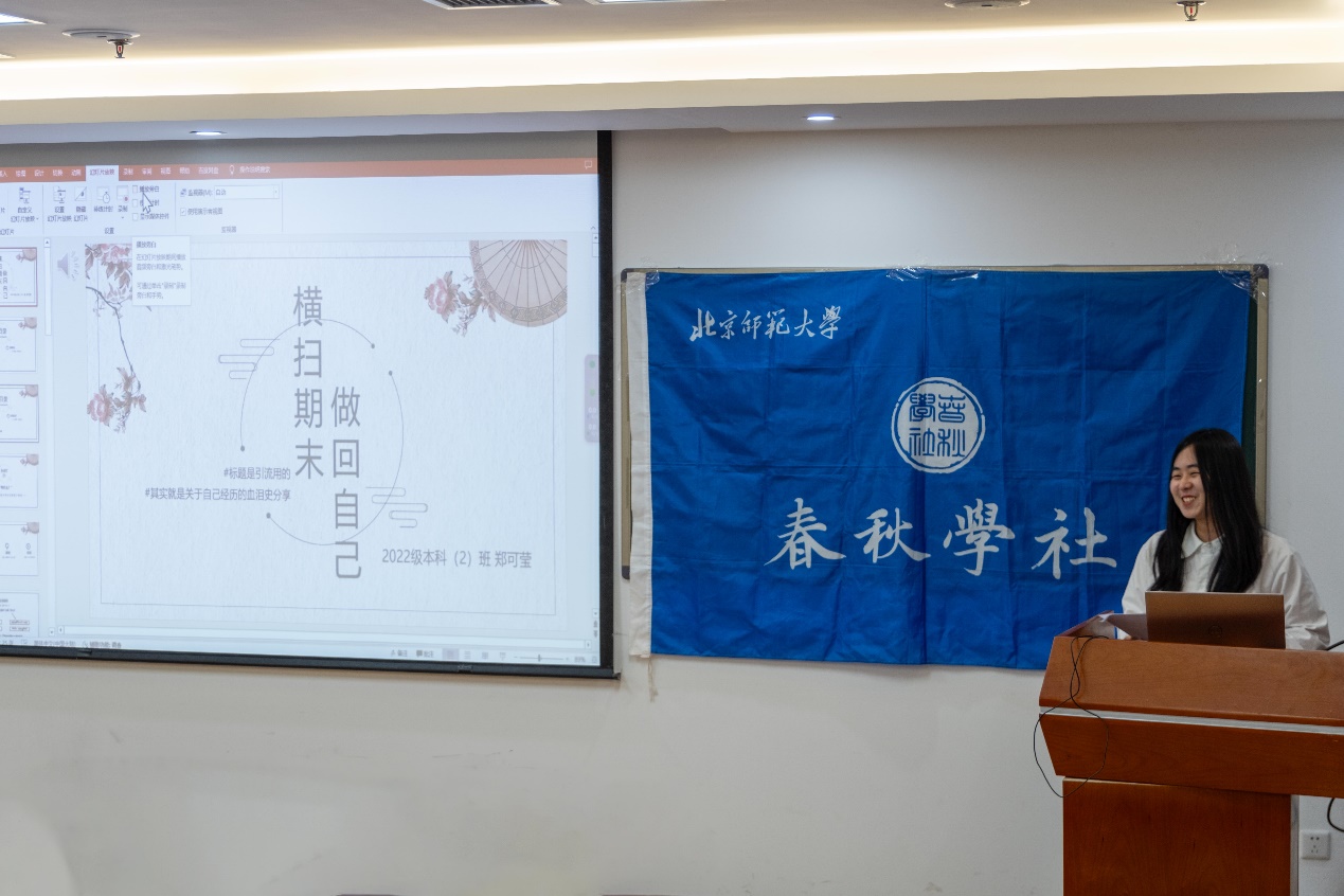 11月25日20:30,春秋学社在主楼638会议室举办了期末经验分享会,本次活动邀请到德赢vwin体育官网登录2022级本科生李濯灵、郑可莹、李晨舟三位同学作为主讲嘉宾。本次活动由春秋学社企划部肖宜佳同学主持。
