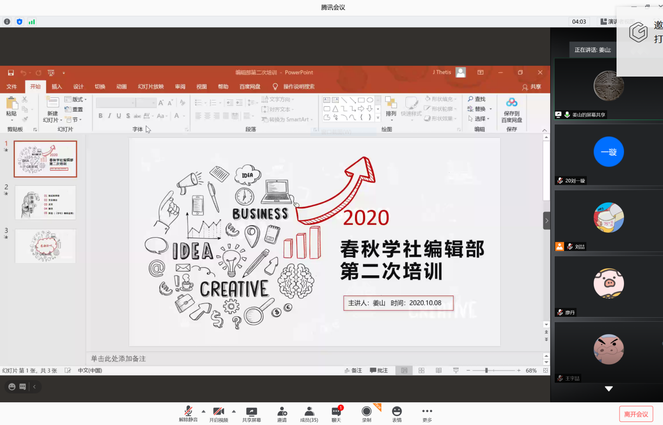2020年10月8日19:00,春秋学社通过线上方式举办了以论文格式规范为主要内容的编辑部第二次培训。本次培训的主讲人是春秋学社副社长姜山同学和编辑部部长王宇喆同学。