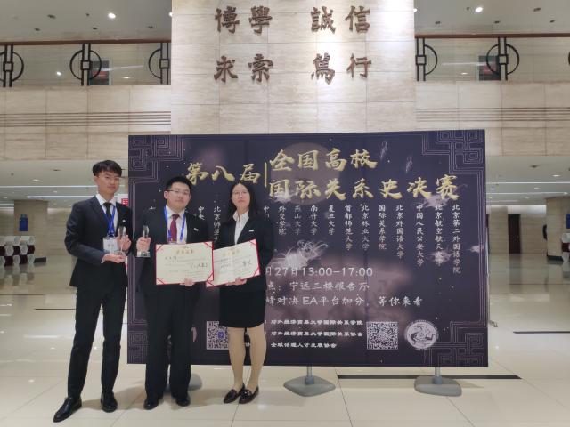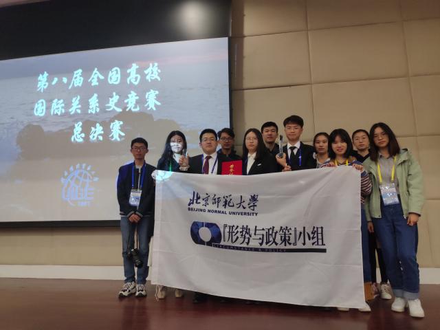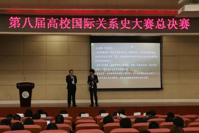 2019年4月27日下午,第八届高校国际关系史大赛总决赛在对外经贸大学成功举办。由我校教育学部2015级本科生赵文博、德赢vwin体育官网登录2016级本科生洪思音、德赢vwin体育官网登录2018级本科生唐洪超组成的德赢vwin体育官网登录代表队应邀参加比赛,最终荣获亚军。德赢官网“形势与政策”小组组长秦雅婕、秘书长陈雁、宣传专员胡潇予等前往现场观摩了比赛。