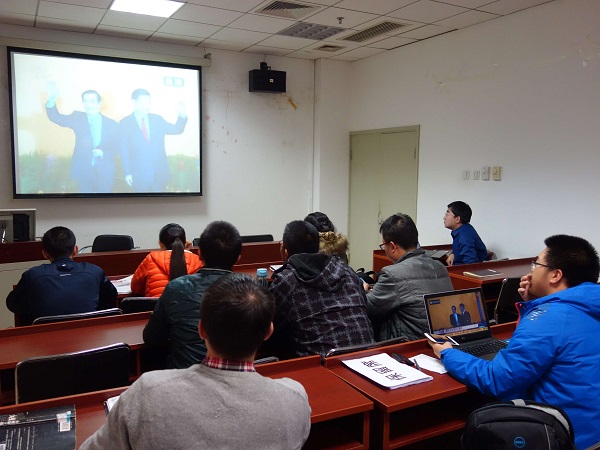 11月7日,德赢官网“形势与政策”小组在主楼A805成功组织观摩会,就海峡两岸领导人习近平与马英九于新加坡会面的直播报道进行观摩学习。