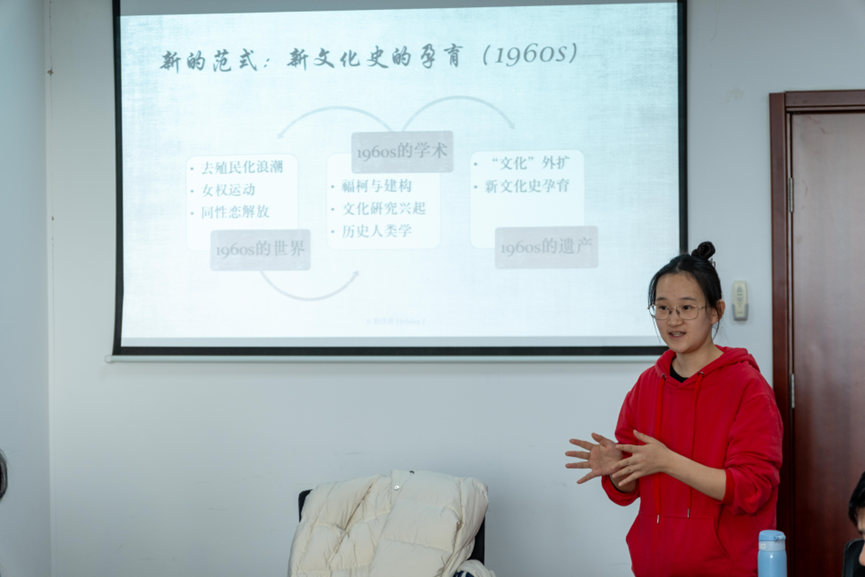 20世纪60年代,非洲原殖民地国家的纷纷独立和西方社会的第二次女权运动等事件,对西方世界的旧有政治社会秩序造成了很大的冲击。随着福柯的建构理论等思想的提出,学界对文化的研究逐渐兴起并不断外扩到各人文社科中,更多地运用人类学的研究方法,新文化史开始孕育发展。20世纪70、80年代,新文化史的名称被正式提出,它以文化体系为主要研究对象,强调文化对社会的形塑作用,并关注实践(practice)和表象(representation),逐渐成为有重大影响的新史学范式。《传统的发明》一书的出版正是这一时期新文化史兴起的证据和成果。在此处,赵佳琪同学特别指出,“representation”一词有两层含义需要辨析——表象(representation)和再现(re-presentation),前者是被想象的事物、观念及其表征,后者是二次或多次呈现之意。