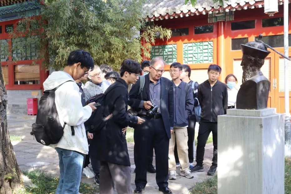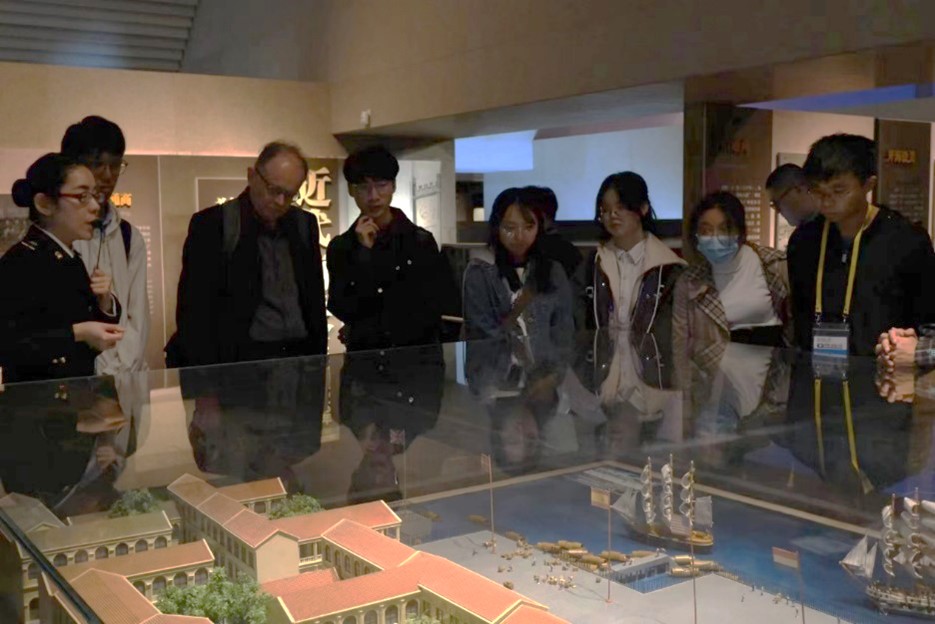 杜普莱教授访学期间,德赢官网师生还陪同他参观了北京古观象台和中国海关博物馆。在古木参天、恬静幽雅的古观象台院落中,同学们向杜普莱教授详细解说中国古代天文观测的历史,一同参观了精致工巧的天文仪器,杜普莱教授介绍了同时期欧洲天文学的发展情况。在中国海关博物馆,杜普莱教授一行在讲解员的带领下了解了中国海关发展史,欣赏了国际海关交流礼品展,并走进“海关902”艇专题展厅,登上见证1992年1月邓小平南巡讲话的缉私艇。杜普莱教授还以特拉法尔加海战为例,为同学们解答了有关海军旗语的相关问题,启发大家发挥专业优势,整合知识体系。