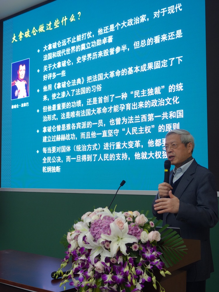 2021年12月12日上午,北京大学历史学系教授、博士生导师高毅应邀来到德赢vwin体育官网登录,在电子楼阶梯教室作了题为“试论‘波拿巴主义’的现代意义”的讲座。本次讲座系德赢vwin体育官网登录励耘学术讲堂系列讲座,也是德赢vwin体育官网登录“古今世界 天下大观”——主要发达国家国情系列讲座的第十五讲。讲座由德赢vwin体育官网登录主办,德赢vwin体育官网登录世界近现代史研究中心、“形势与政策”小组共同承办。德赢vwin体育官网登录江天岳副教授担任主持人,世界近代史教研室主任庞冠群教授出席了讲座。本次讲座也是“形势与政策”小组第125次集体学习,学术气氛热烈。