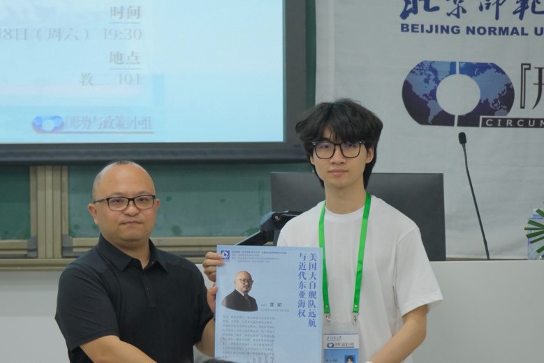在提问环节,贾珺老师回顾了自己二十余年来从事海军史学习与研究的历程,并就美苏海军建设差异、大白舰队远航对当代海权理论发展与海军建设启示等话题与同学们进行了探讨。随后,贾老师向积极提问的同学赠送了自己的专著,“形势与政策”小组成员代表向贾老师赠送了讲座纪念海报。此外,小组还精心选取了贾老师十余年来参与小组各项活动的珍贵影像,制成特别的“邢予正时光相册”印刷品,以为留念。贾老师深情回顾了与“邢予正”共同经历的点点滴滴,充分肯定了小组成立以来在各方面取得的成果,并真诚地表达了对小组未来发展的殷切希望。