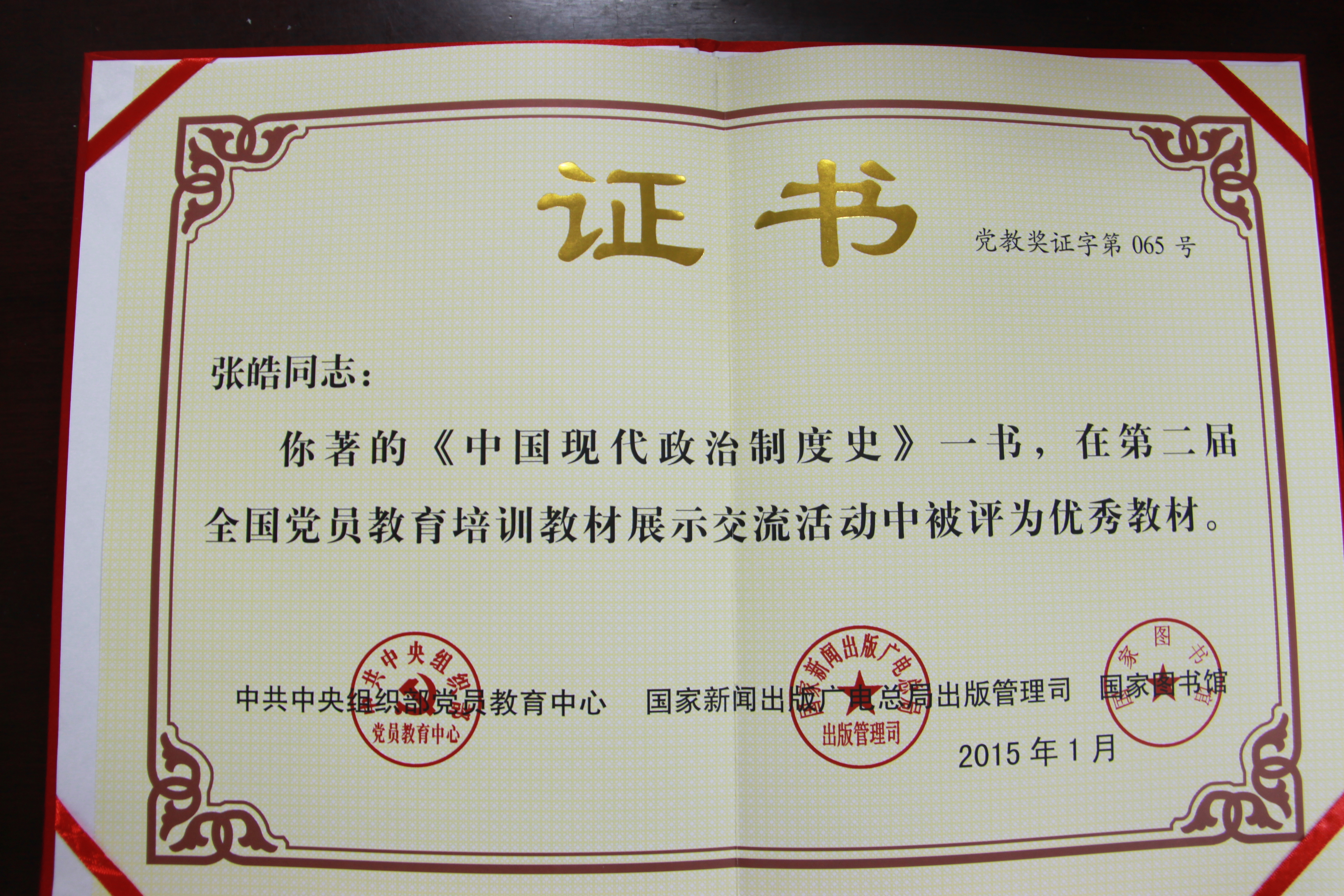 德赢官网张皓教授所著《中国现代政治制度史》获奖