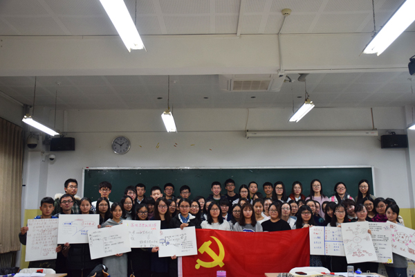 在组内讨论的过程中,支部成员畅所欲言,从高校思想政治工作与中国梦的关系、目前高校思想政治工作上的缺失、学生党员的努力方向等角度结合自身实际发表了对高校思想政治问题的看法。讨论后,各小组通过思维导图或结构图的方式将学习讨论成果呈现在图画纸上。