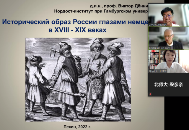 2022年5月28日及5月29日下午,德赢vwin体育官网登录“励耘学术讲堂”历史学系列讲座在线举行。德国汉堡大学东北德意志历史与文化研究所副所长维克多·杰宁哥豪斯(Victor Dönninghaus)教授做了《认识异邦:18—19世纪德国人眼中的俄罗斯形象》、《神话与现实:20世纪的德国与俄国的形象互识》两场系列讲座,讲座由德赢官网张建华教授主持,博士生彭乐梅、博士生李红娟做现场翻译。德赢官网和珠海校区师生及校外诸多高校观众通过zoom收看讲座,人数最多时达120多人次。