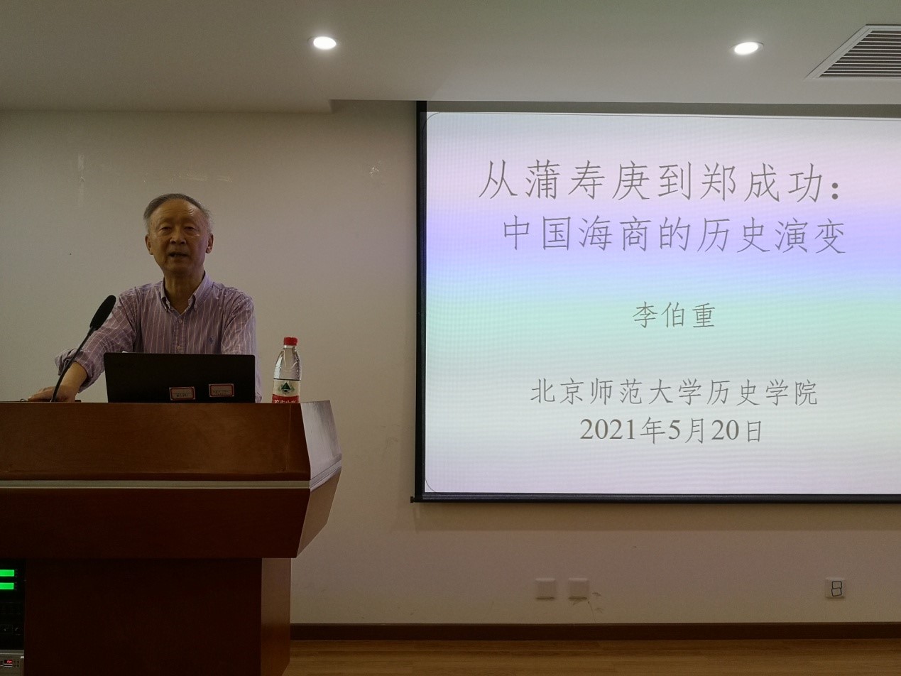 2021年5月20日上午,北京大学历史学系李伯重教授应邀到德赢vwin体育官网登录,作了“从蒲寿庚到郑成功:中国海商的历史演变”为主题的专题学术讲座。本次讲座介绍了海上贸易和中国海商的历史演变,讲座内容分为四个板块,其中包括古代外贸的三大转变和两个个案研究,分别是外贸重心由陆上贸易转向海上贸易,海上贸易的主要活动区域由“西洋”转向三洋交汇的“南洋”和外贸由官方贸易转向民间贸易,最后是从蒲寿庚到郑成功,两个外贸家族的个案研究。陈奉林教授主持了这次讲座。《世界知识》编辑部徐波编审、外交学院马铭老师应邀参加了本次讲座。