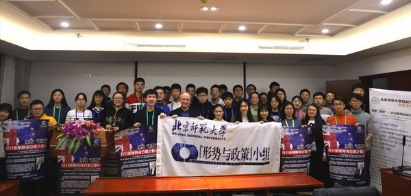 在一个半小时的英语演讲中,德瓦乐教授将英国“脱欧”进程与政治学相关理论紧密结合,在历史与现实的交织中分析这一事件对有关各方的影响,充分展现了独到的学术见解和广阔的学术视野,引发了在座师生的积极思考。在提问环节中,德瓦乐教授就欧盟应对“脱欧”的策略、欧洲一体化与民族国家的关系、社交媒体与民粹思潮等问题进行了深入的探讨。在讲座的最后,安然教授进行了点评。她指出,德瓦乐教授结合英国的历史渊源与传统,以政治学的独到视角分析社会思潮对现实事件的影响,带来了一场既充满激情又富于理性的讲座,对同学们的历史专业学习具有很大启发性。她代表主办方向德瓦乐教授赠送讲座海报作为纪念。德瓦乐教授、安然教授欣然同“形势与政策”小组成员合影留念。
