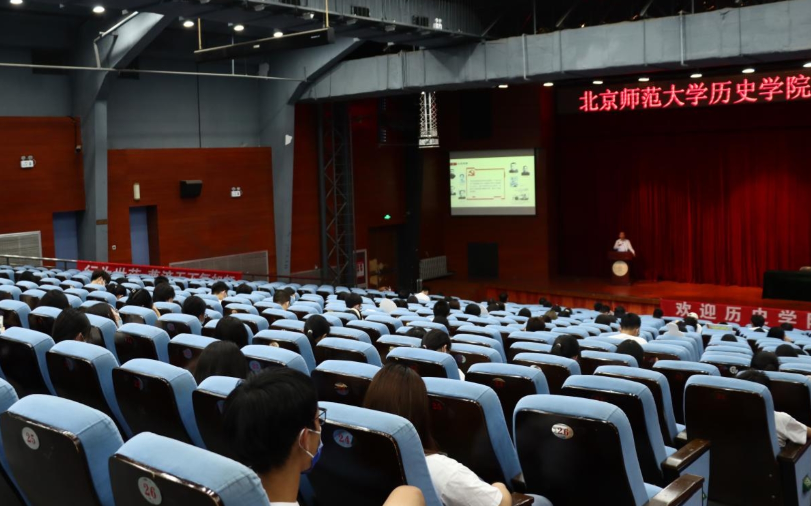 最后,耿向东老师对新生提出三点希望,希望新生认真学习习近平新时代中国特色社会主义思想和习总书记关于教育事业、关于历史的系列重要讲话,坚持以马克思主义的基本理论指导历史学习和历史研究,为人们认识历史、认识现实提供借鉴;希望新生传承北师大120年的红色师范传统,胸怀中华民族伟大复兴的远大志向,立志为党和人民的教育事业的发展、为弘扬中华民族优秀传统文化、为建设中国特色社会主义事业贡献力量;希望新生努力按照总书记的期望,秉持“学为人师,行为世范”的校训,珍惜时光,刻苦学习,砥砺品格,全面发展,成为社会主义合格的建设者和接班人。