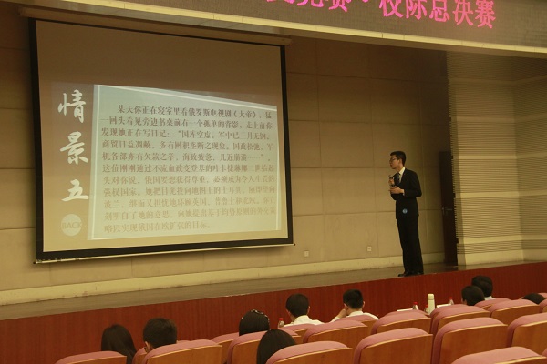 在5月14日举行的复赛中,我校代表队以分赛区第一名成绩晋级。当天共有德赢vwin体育官网登录、对外经贸大学、北京外国语大学、北京第二外国语大学、中国政法大学、国际关系学院、外交学院和首都师范大学八支队伍参加决赛。比赛共分为“浮云在一决”“往来成古今”“读书破万卷”“狭路相逢勇者胜”“柳暗花明又一村”五个环节。第一环节“浮云在一决”中,师大选手以全对战绩晋级。第二环节“往来成古今”要求选手置身某一历史时刻与著名历史人物对话,指导外交方针政策,李博轩同学与俄国叶卡捷琳娜大帝模拟对话,畅谈俄罗斯帝国的崛起之路。第三环节“读书破万卷”中,我校选手沉着冷静,完美通关。第四个环节“狭路相逢勇者胜”要求每队各派出一名选手,在某一特定的历史背景下扮演不同的政治人物,为争取本国利益的最大化而展开交锋。我校代表队派出张弘毅同学,与对外经济贸易大学选手围绕朝鲜战争后驻军与战俘遣返问题展开和平谈判。双方各自陈述观点,理性分析,将全场气氛推向高潮,张弘毅同学利用对方漏洞,层层推进,取得不俗表现。前四环节我校选手通过不懈努力,一直保持着优势,并逐步扩大分差。第五环节“柳暗花明又一村”为决胜环节,比赛进程扣人心弦,选手们使出浑身解数,运用自己的冷静分析和智慧,确保我校稳居第一。